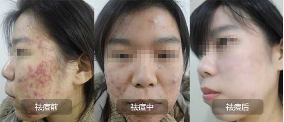 通过轻度痘痘治疗,解决由于毛囊口狭窄导致皮脂分泌过多、毛囊皮脂腺导管堵塞问题,使得皮肤表层毛囊壁恢复正常,正常排除皮脂腺,痘痘消失后适度中药调理即可。
