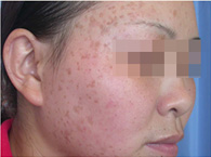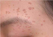 扁平疣分布面积逐渐增大, 颜色成浅咖啡色或深咖啡色。